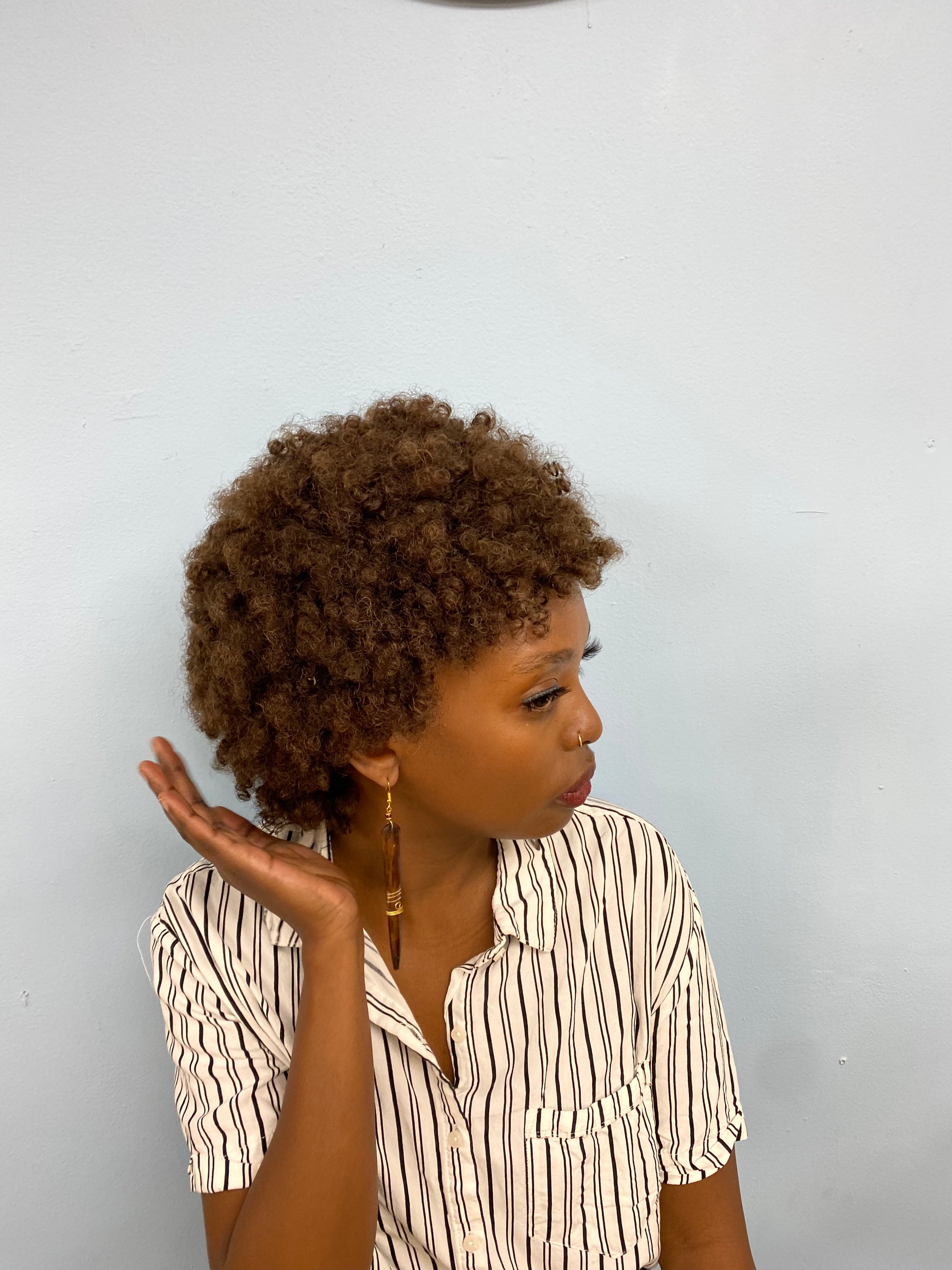 Introducing Berry, a short-hair afro wig that's perfect for women who want a stylish look without the hassle of maintaining their own hair.